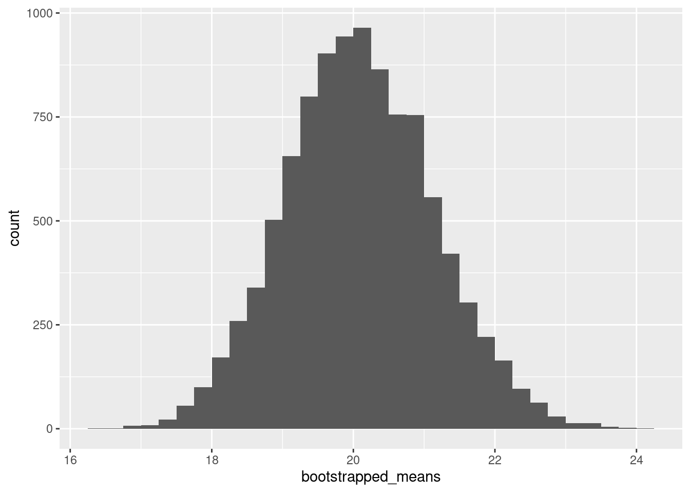 }ggplot(data.frame(bootstrapped_means), aes(x = bootstrapped_means)) +